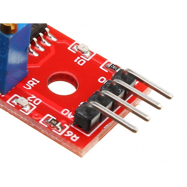 The Linear Hall Effect Sensor Module detects both North and South poles and relative strength of a magnetic field and provides both analog and digital outputs.